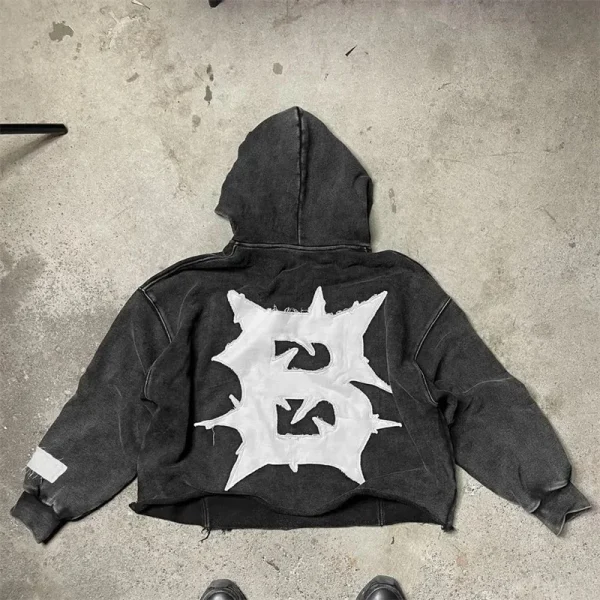 Rhinestone Distressed DTG Print Streetwear Washing Hoodies