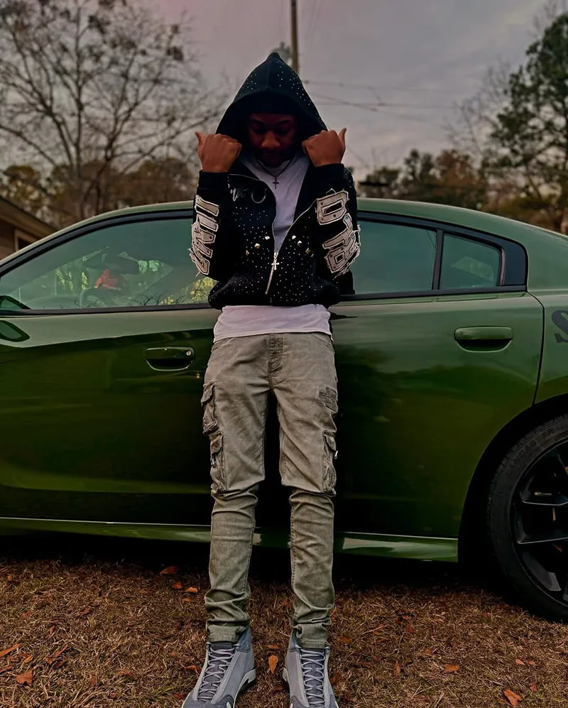 This custom hoodie is a powerful tool for brands seeking to make a lasting impression. Its black, acid-washed finish pairs seamlessly with custom men’s t-shirts or custom men’s jackets, creating a unified look for events, retail, or team uniforms. The customizable rhinestone prints, sleeve lettering, and metal rivets allow you to craft a piece that embodies your brand’s identity, whether for music festivals, tech promotions, or fitness campaigns.